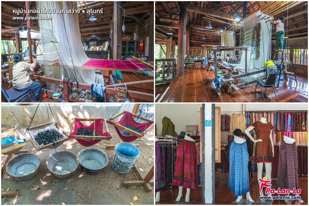 หมู่บ้านทอผ้าไหมบ้านท่าสว่าง (Ban Tha Sawang Silk Weaving Village) เป็นหมู่บ้านที่มีชื่อเสียงในเรื่องของการทอผ้าไหม โดยเฉพาะผ้าไหมยกทองที่มีการออกแบบลวดลายสลับซับซ้อนงดงาม ผสมผสานกันระหว่างการทอแบบราชสำนักกับเทคนิคแบบพื้นบ้านดั้งเดิม จนกลายเป็นผ้าทอที่มีความงดงามน่าอัศจรรย์และมีชื่อเสียงโด่งดังไปทั่วโลก หมู่บ้านเล็กๆ ในจังหวัดสุรินทร์แห่งนี้เป็นสถานที่ที่ผู้มาเยือนจะได้รับทั้งความเพลินเพลิน ความรู้อันทรงคุณค่าเกี่ยวกับภูมิปัญญาการทอผ้าไหมไทยที่หาชมได้ยากยิ่งในปัจจุบัน รวมทั้งสามารถซื้อหาผ้าผลิตภัณฑ์จากผ้าไหมสวยๆ คุณภาพดีได้จากที่นี่ด้วย