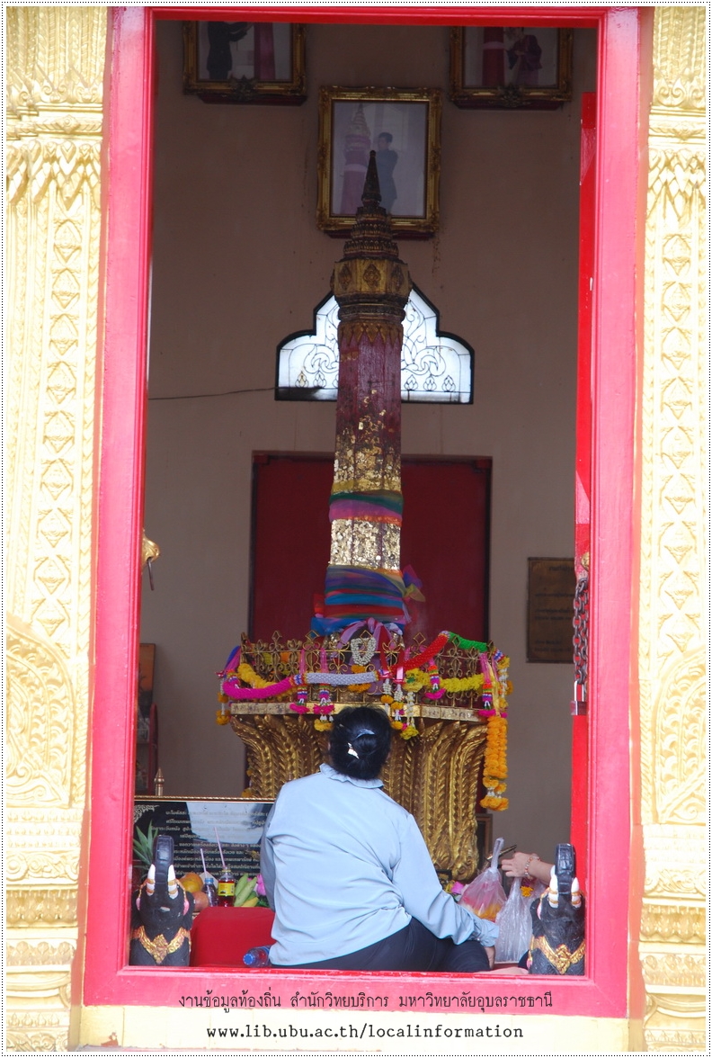 เสาหลักเมืองภายในศาลหลักเมืองอุบลราชธานี (ขอขอบคุณภาพจาก http://www.lib.ubu.ac.th/localinformation)