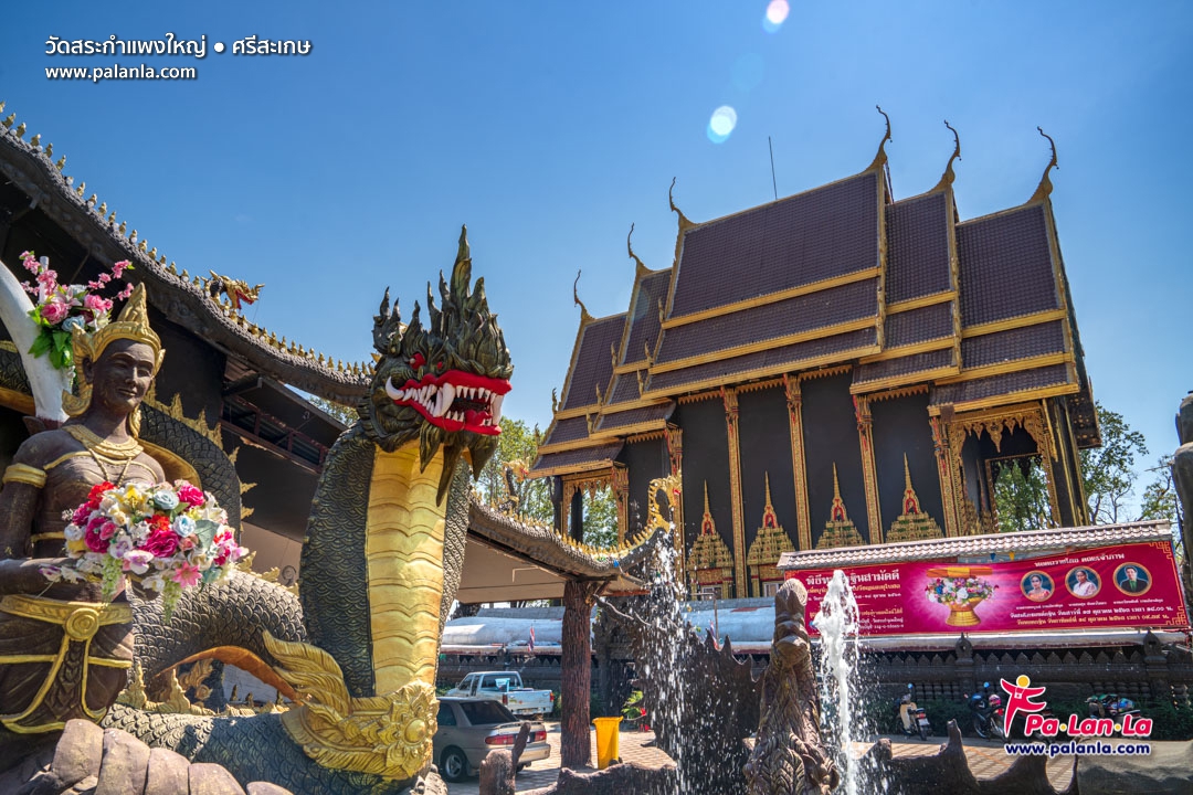 วัดสระกำแพงใหญ่ (Wat Sa Kamphaeng Yai) เป็นวัดประจำจังหวัดศรีสะเกษที่ได้รับความนิยมจากนักท่องเที่ยวเป็นอย่างมาก เนื่องจากมีความสวยงามของพระอุโบสถ และตั้งอยู่ใกล้กับโบราณสถานอย่างปราสาทวัดสระใหญ่ รวมถึงเป็นที่ประดิษฐานพระพุทธรูปปางนาคปรกโบราณที่มีอายุราวหนึ่งพันปีที่ค้นพบจากบริเวณโบราณสถาน ฆ้องใหญ่ชัยมงคล และพระพุทธรูปหลวงปู่เครื่อง สุภัทโท ขนาดใหญ่ที่ประดิษฐานอยู่ด้านบนของวิหาร จึงเป็นสถานที่ท่องเที่ยวเชิงศาสนาที่พุทธศาสนิกชนให้ความเคารพศรัทธาเป็นอย่างมาก