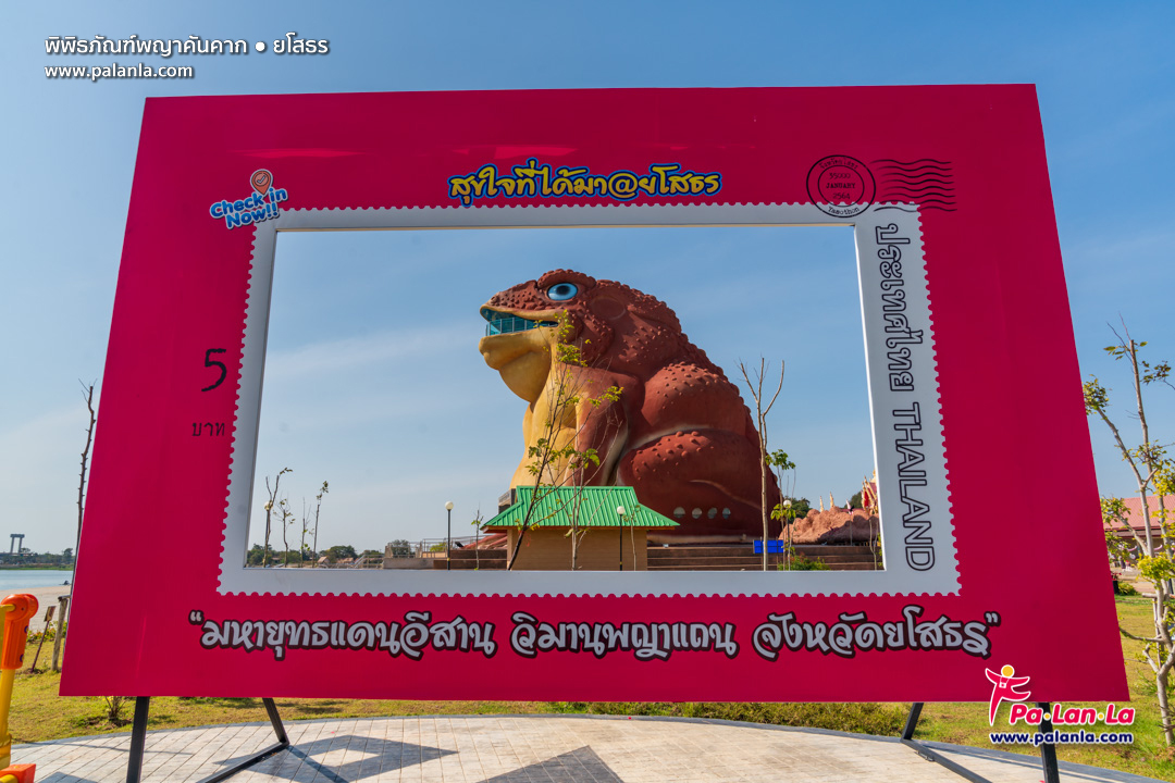 นอกจากนี้ในพื้นที่บริเวณใกล้เคียงกัน จะมีแลนด์มาร์กอีกแห่งหนึ่งเป็นอาคารพิพิธภัณฑ์พญานาค ที่เรียกกันว่า วิมานพญาแถน โดยสองแลนด์มาร์กนี้มีที่มาที่ไปจากตำนานเรื่องราวระหว่างพญาแถนและพญาคันคาก ในครั้งที่พระพุทธเจ้าเสวยชาติเป็นพญาคางคกนามว่าพญาคันคากอยู่ใต้ต้นโพธิ์ในป่า โดยเป็นช่วงที่พญาแถนซึ่งเป็นเทวดาที่ดูแลโลกเบื้องล่างเกิดโกรธเคืองโลกมนุษย์เป็นอย่างมาก จึงบันดาลไม่ให้ฝนตกถึง 7 เดือน ก่อให้เกิดความลำบากอย่างแสนสาหัส พญาคันคากจึงรวบรวมกองทัพสัตว์ขึ้นไปรบกับพญาแถน ในที่สุดพญาแถนจึงยอมตกลงทำสัญญาสงบศึกกับพญาคันคากโดยตกลงกันว่า หากมนุษย์ส่งสัญญาณให้รู้ด้วยการจุดบั้งไฟขึ้นสู่ท้องฟ้าเมื่อไหร่ ให้พญาแถนบันดาลให้ฝนตกลงมา และหากเมื่อได้ยินเสียงกบหรือเขียดร้อง ให้รับรู้ว่าฝนได้ตกลงมาแล้ว จากตำนานดังกล่าวจึงเป็นที่มาของประเพณีงานบุญบั้งไฟซึ่งเป็นประเพณีที่มีชื่อเสียงของจังหวัดยโสธรที่จัดขึ้นอย่างยิ่งใหญ่ในทุกๆ ปีในช่วงเดือนพฤษภาคม และเป็นที่มาของอาคารรูปทรงคางคกแห่งนี้นั่นเอง