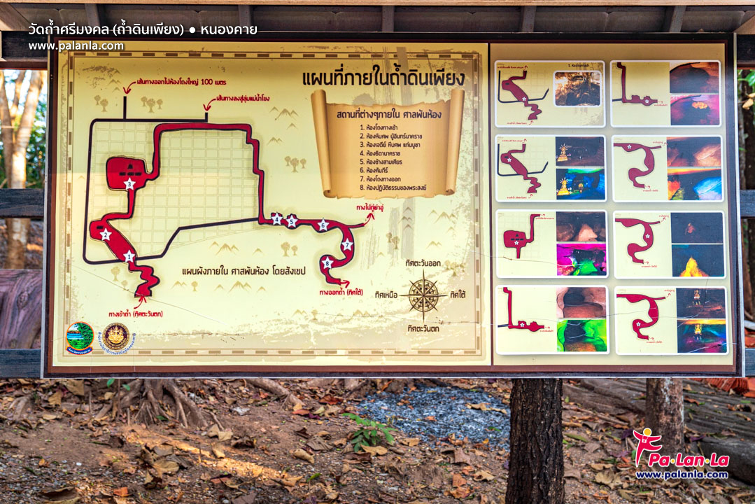 แผนที่แสดงจุดต่างๆ ภายในถ้ำดินเพียง
