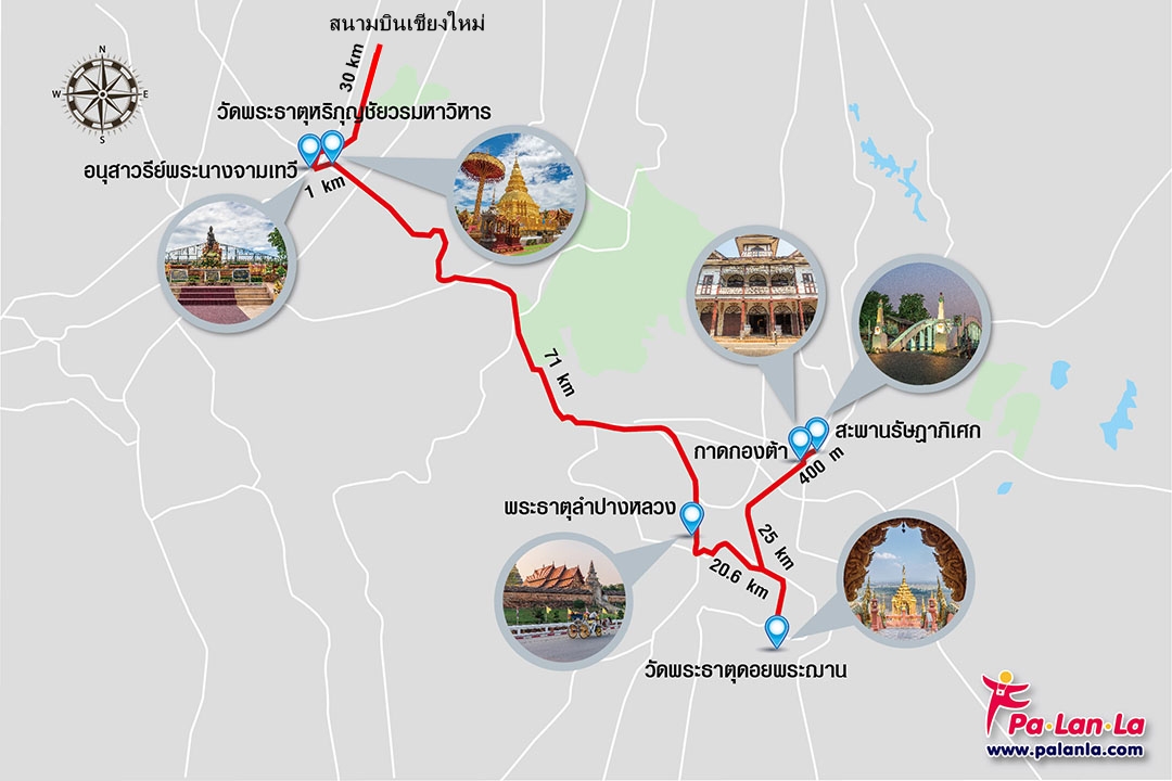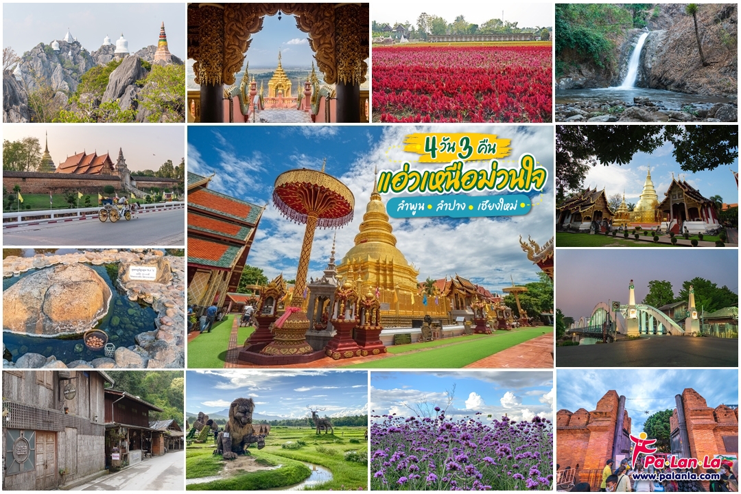 ทริป 4 วัน 3 คืนในครั้งนี้ Palanla จะพาทุกคนท่องเที่ยวไปยัง 3 จังหวัดทางภาคเหนือ นั่นก็คือ ลำพูน ลำปาง และเชียงใหม่ โดยเราเลือกที่จะนั่งเครื่องบินจากกรุงเทพมาลงที่เชียงใหม่แล้วเช่ารถจากสนามบินขับไปลำพูน ลัดเลาะไปลำปาง ก่อนจะวนกลับมาเที่ยวเชียงใหม่ คืนรถ แล้วบินกลับกรุงเทพฯ หากพร้อมแล้วขอเชิญออกเดินทางไปชมความสวยงามน่าอัศจรรย์ทางธรรมชาติ เที่ยววัดสวยๆ สร้างความร่มเย็นในจิตใจ สัมผัสกับวัฒนธรรมเก่าแก่น่าหลงใหล และเพลิดเพลินกับสีสันของทั้ง 3 จังหวัดนี้ไปพร้อมๆ กัน