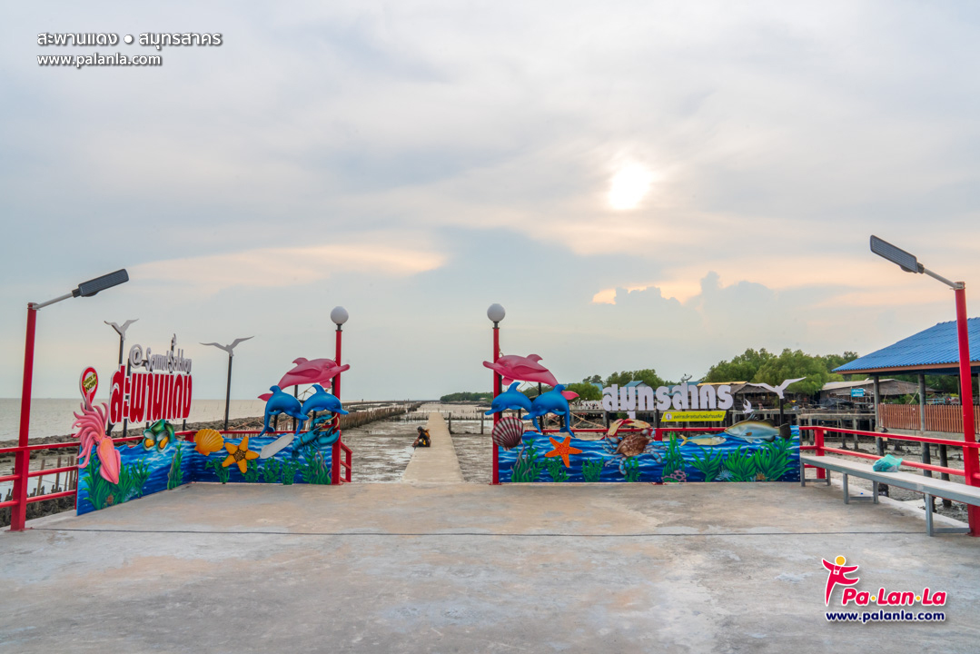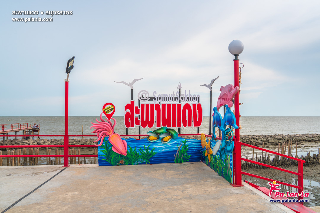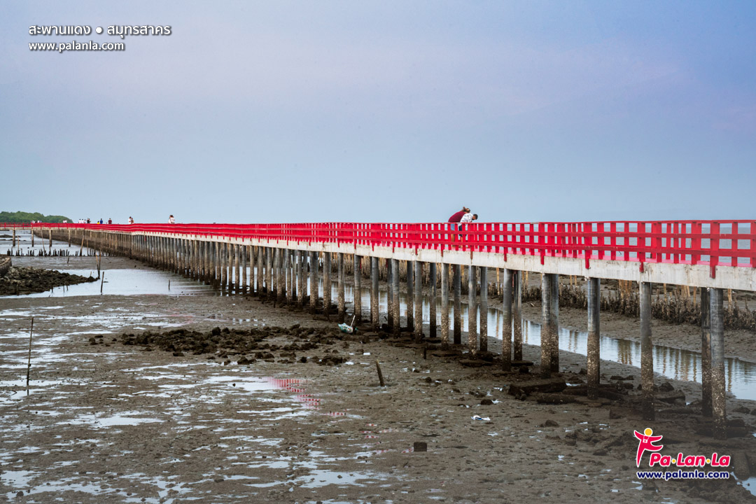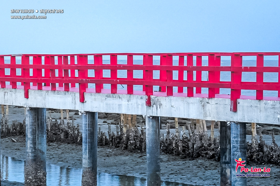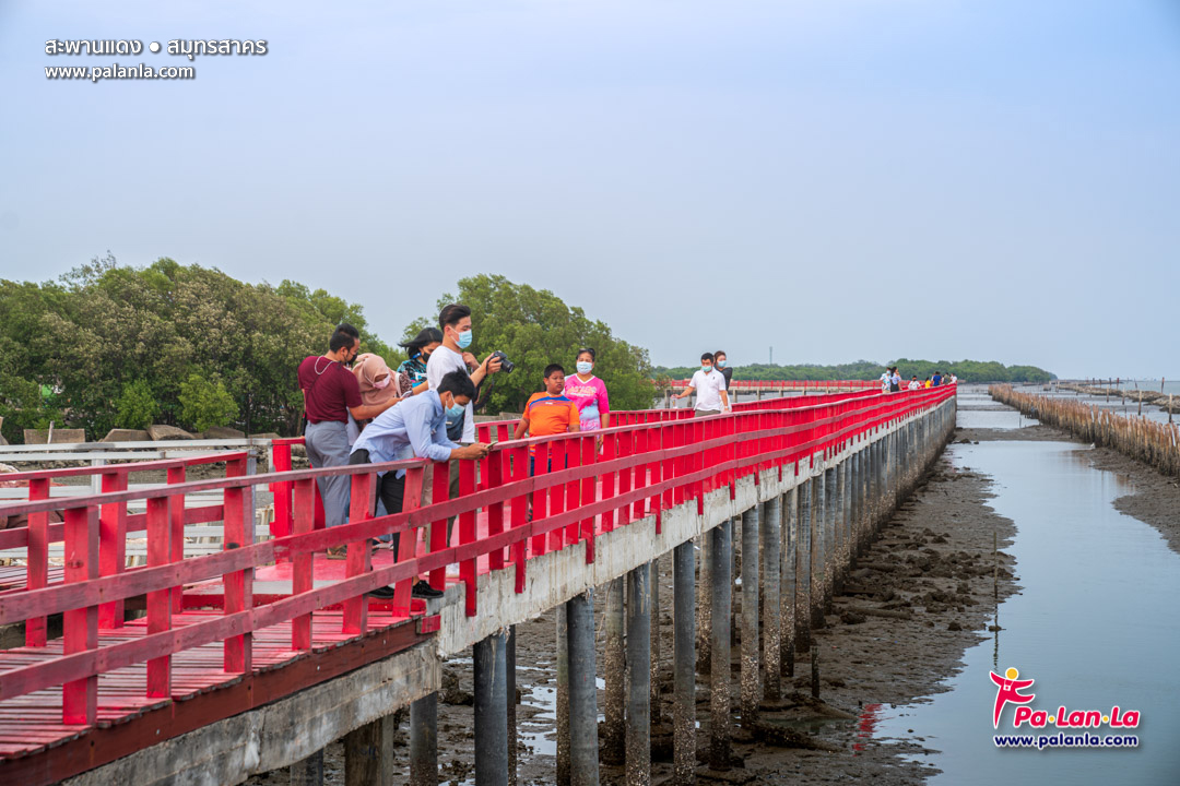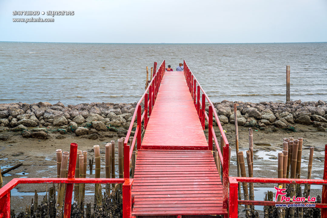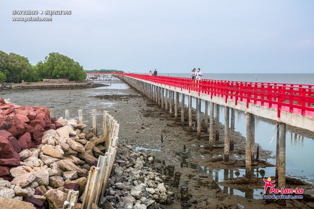 สะพานแดง (Red Bridge) เป็นสะพานสร้างด้วยไม้กระดานทาสีแดงความยาวเกือบหนึ่งกิโลเมตรยื่นไปในทะเล ถือเป็นหนึ่งในแลนด์มาร์กสำคัญของสถานที่ท่องเที่ยวประจำจังหวัดสมุทรสาครที่นักท่องเที่ยวนิยมเดินทางมากินลมชมวิว และเก็บภาพคู่กับบรรยากาศสวยๆ ของสะพานสีแดงสดแห่งนี้