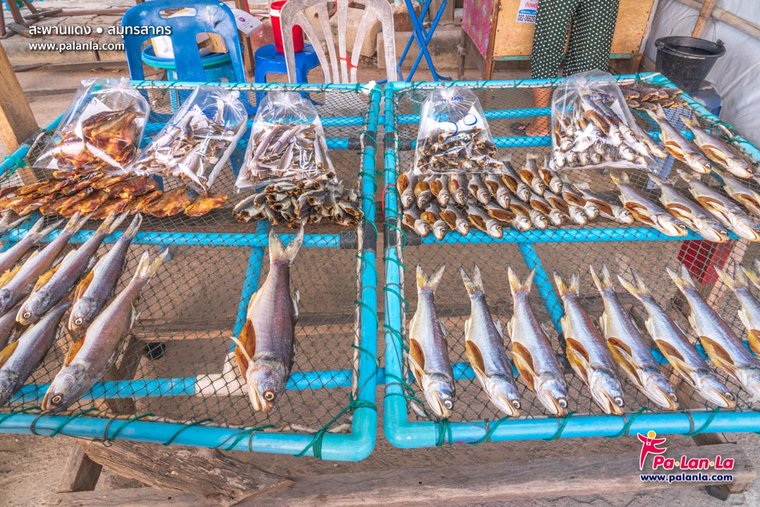 อาหารทะเลที่ชาวบ้านนำมาจำหน่ายบริเวณใกล้ๆ กับสะพานแดง