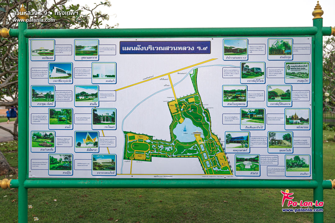 แผนผังแสดงภาพสถานที่ต่างๆ ภายในบริเวณสวนหลวง ร.9