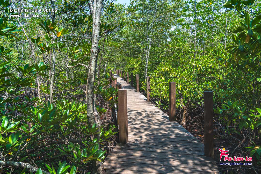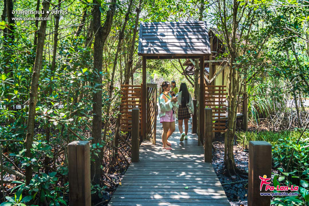 เส้นทางเดินศึกษาธรรมชาติความยาวกว่า 1,600 เมตรของอ่าวคุ้งกระเบน ตลอดสองข้างทางมีพรรณไม้หลากหลายชนิดให้ศึกษา