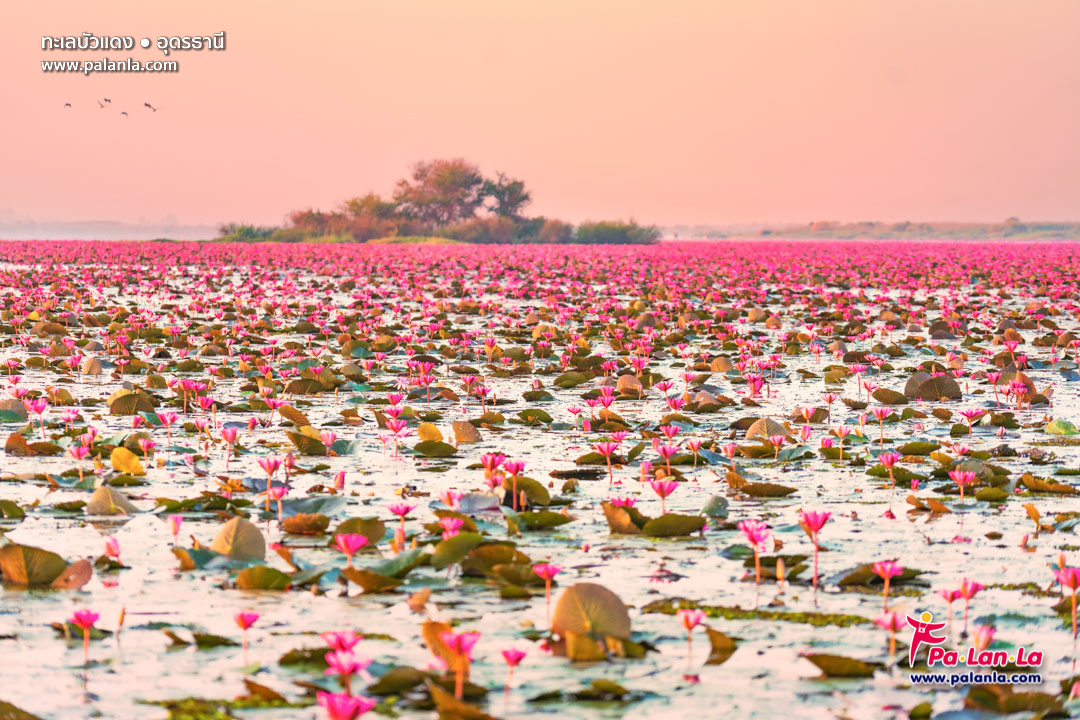 ทะเลบัวแดง (Red Lotus Lake) บึงหนองหาน อำเภอกุมภวาปี จังหวัดอุดรธานี บึงดอกไม้ตามธรรมชาติที่ใหญ่ที่สุดในประเทศไทย งดงามละลานตาไปด้วย “บัวสาย” หรือ “บัวแดง” นับล้านๆ ดอก และยังเป็นสถานที่สำคัญของตำนานผาแดงนางไอ่ที่ยังคงเล่าขานต่อเนื่องกันมาจนถึงทุกวันนี้ หนองหานถือเป็นบึงน้ำจืดที่มีความความหลากหลายทางชีวภาพแห่งหนึ่งของประเทศ ภายในบึงนั้นอุดมสมบูรณ์ไปด้วยพืชน้ำ พันธุ์นก และพันธุ์ปลาหลากหลายชนิด ซึ่งพันธุ์ไม้น้ำที่โดดเด่นของบึงหนองหานก็คือ “บัวสาย” หรือ “บัวแดง” นับล้านที่ธรรมชาติได้เนรมิตความงามสุดอลังการนี้ขึ้นมา ดึงดูดนักท่องเที่ยวให้เดินทางมาเยือนและสัมผัสกับความงดงามของ “ทะเลบัวแดง” นี้ในทุกฤดูหนาว