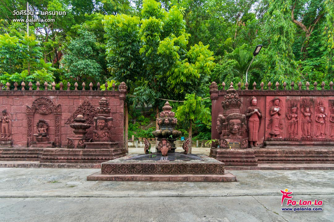 บริเวณกำแพงที่สร้างจำลองศิลปะขอมโบราณได้อย่างวิจิตรบรรจง