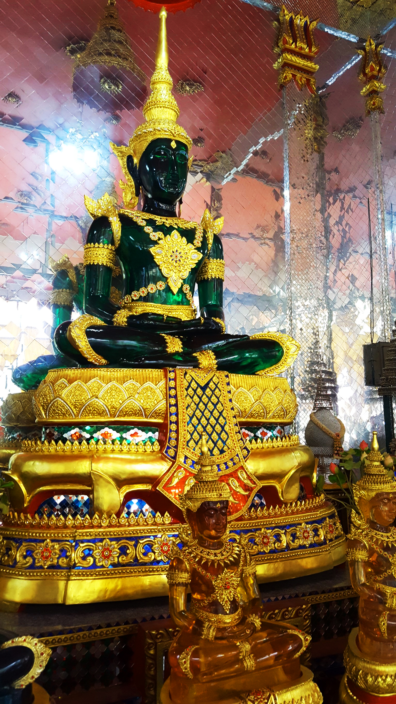 วัดแห่งนี้มีสิ่งที่น่าสนใจให้เที่ยวชมอยู่หลายจุด จุดแรกอยู่บนวิหารบนยอดเขาซึ่งเป็นที่ประดิษฐานพระแก้วมรกตองค์จำลองขนาดใหญ่ที่สุดในโลกซึ่งเป็นองค์พระพุทธรูปที่สร้างด้วยเรซิ่นประดับด้วยเพชรแท้ 7 กะรัต พลอยแท้กว่า 2,000 เม็ด และทับทิมอีกจำนวนหนึ่ง มีขนาดหน้าตักกว้าง 49 นิ้ว สูง 32 นิ้ว หนัก 1 ตัน โดยมีการเปลี่ยนเครื่องทรงครบทั้ง 3 ฤดู