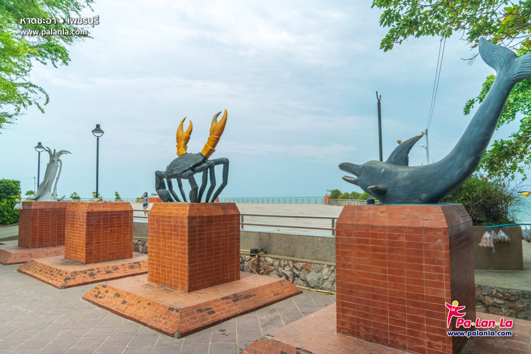 รูปปั้นปลาโลมา ปู และปลาหมึก บริเวณหาดชะอำ