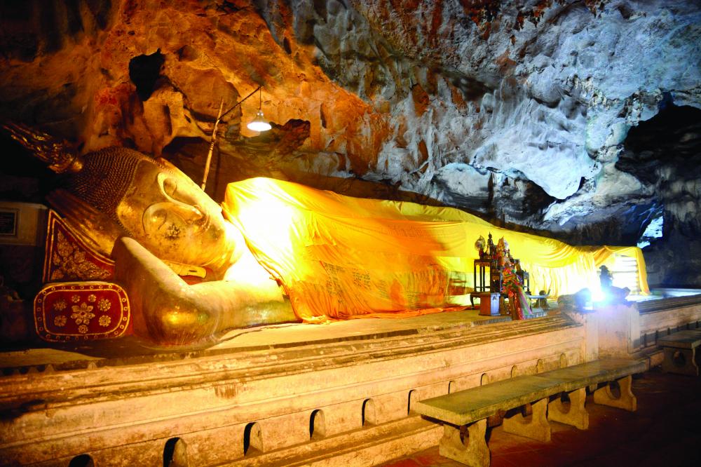 องค์พระพุทธรูปปางไสยาสน์ภายในถ้ำเขาหลวง (ขอขอบคุณภาพจาก (https://thailandtourismdirectory.go.th/th/info/attraction/detail/itemid/1492)