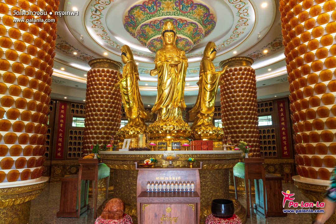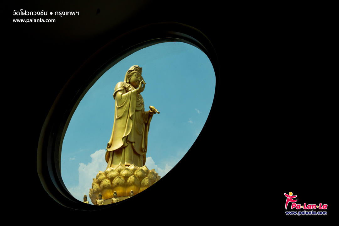 เจ้าแม่กวนอิมองค์สีทองอร่ามงดงามมองจากกด้านในอาคาร