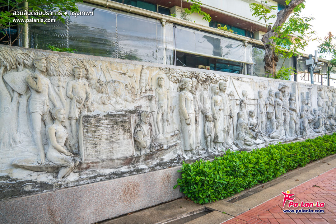 ประติมากรรมนูนต่ำภายในบริเวณสวนสันติชัยปราการ