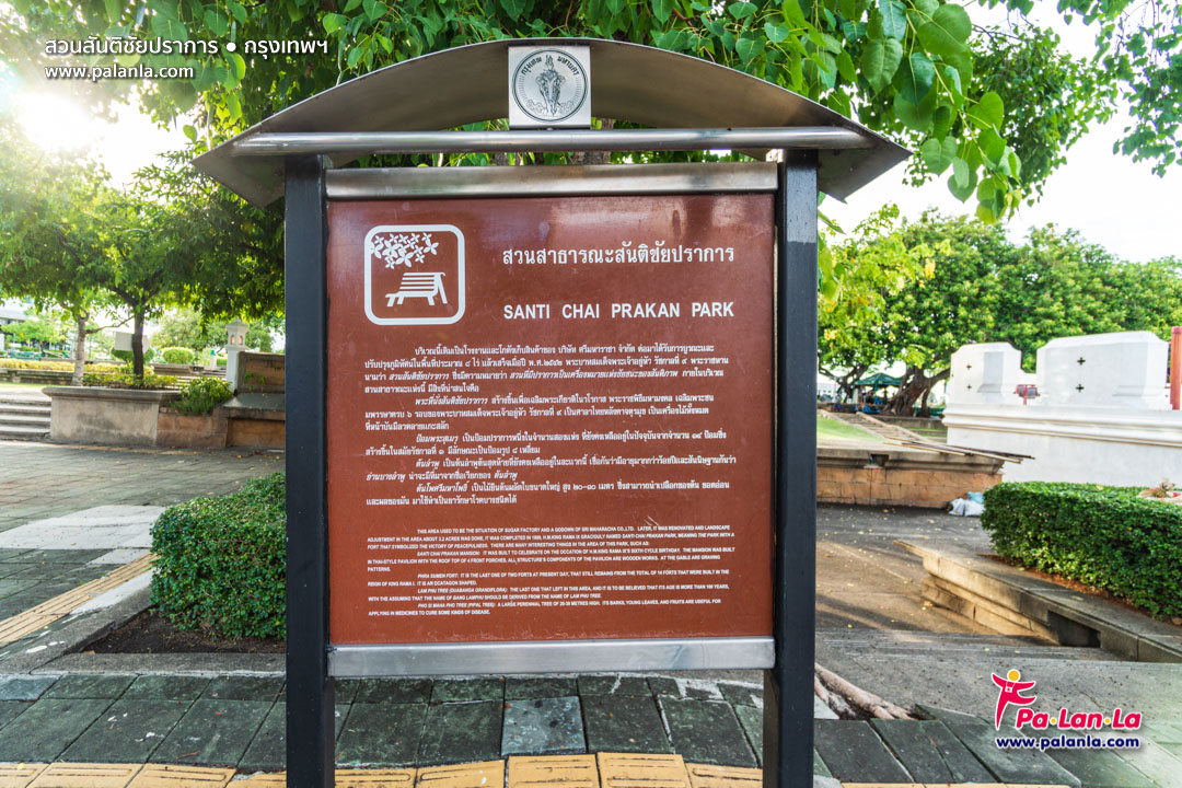 ป้ายข้อมูลเกี่ยวกับสวนสันติชัยปราการ