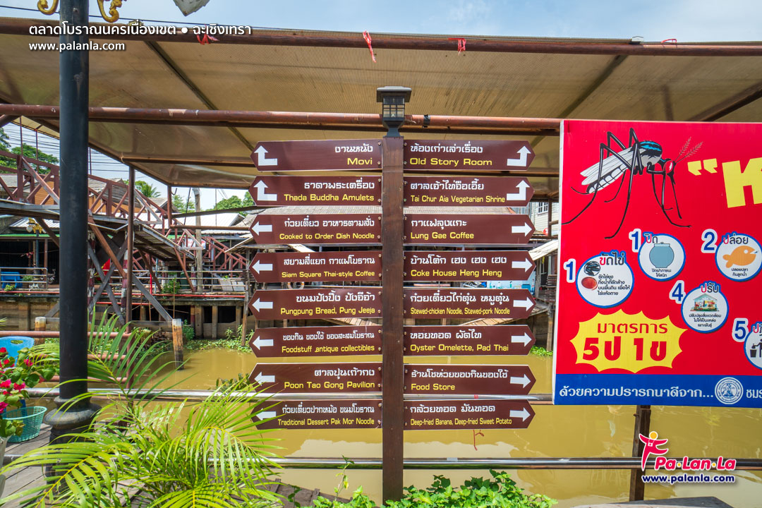 ป้ายบอกทางไปร้านขายอาหารและเครื่องดื่มภายในตลาด