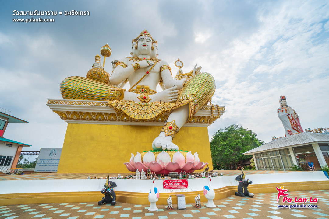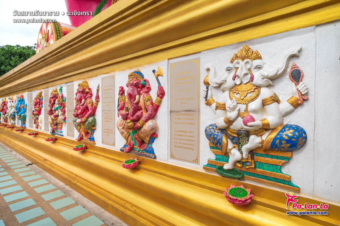 วัดสมานรัตนาราม (Wat Saman Rattanaram) เป็นวัดที่เป็นแหล่งศูนย์รวมสิ่งศักดิ์สิทธิ์ตามความเชื่อของศาสนาพุทธ ศาสนาพราหมณ์-ฮินดู และองค์ทวยเทพของจีน ภายในวัดโดดเด่นด้วยเทวรูปองค์พระพิฆเนศปางนอนเสวยสุขเนื้อสีชมพูขนาดใหญ่ และยังมีเทวรูปเจ้าแม่กวนอิม องค์พระราหู พญานาค ศาลเทพเจ้าจีน และพระพุทธรูปต่างๆ ให้นักท่องเที่ยวได้แวะสักการะตามความเชื่อเพื่อความเป็นสิริมงคล นอกจากนี้ที่นี่ยังเป็นจุดชมทัศนียภาพริมแม่น้ำบางประกงที่มีความสวยงามอีกแห่งหนึ่งในจังหวัดฉะเชิงเทราอีกด้วย