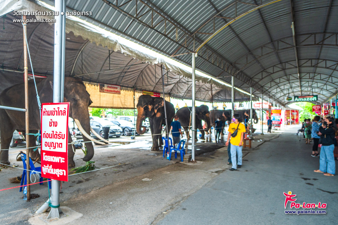 ช้างที่ทางวัดได้รับอุปการะไว้ในช่วงโควิด
