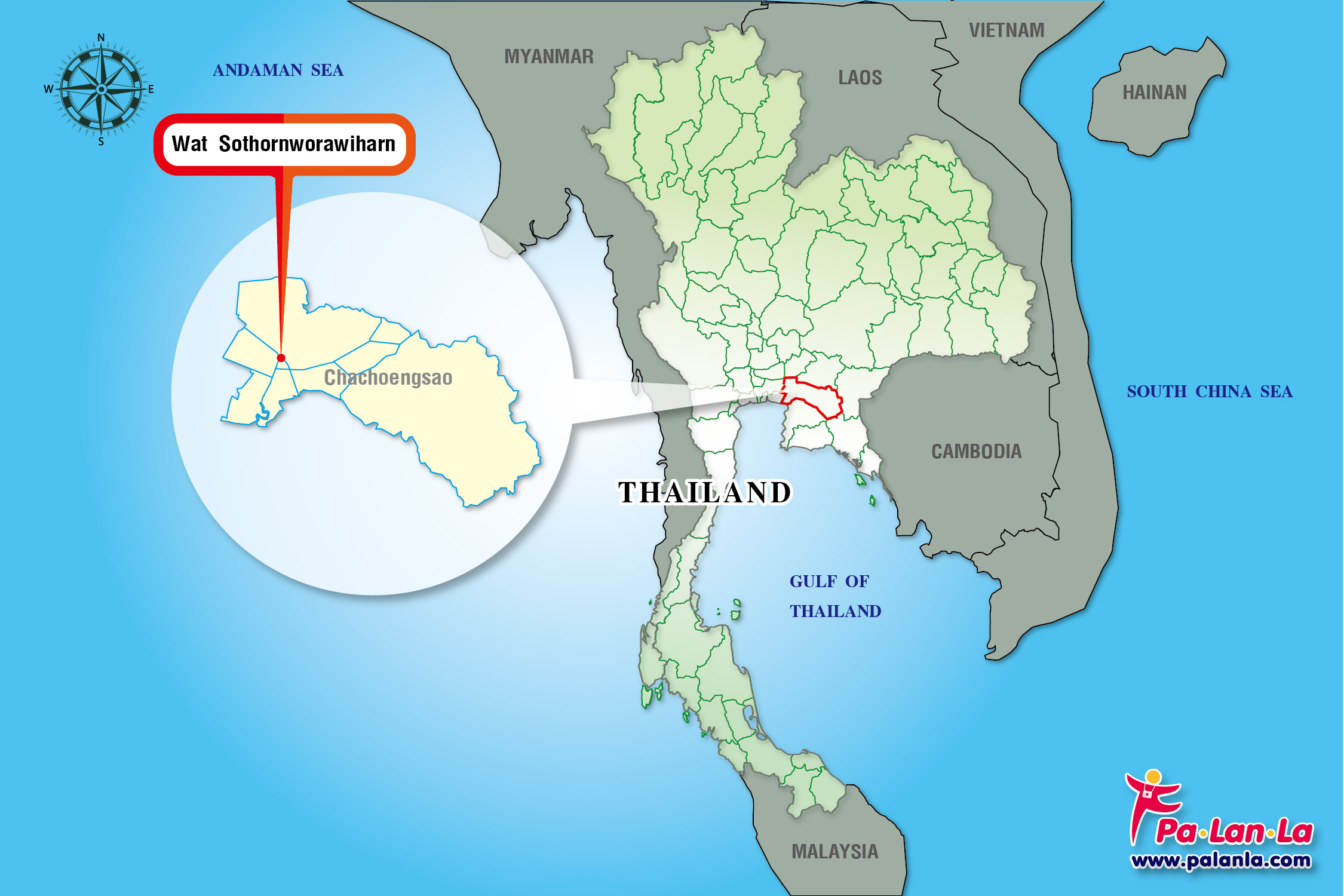 แผนที่ตั้ง วัดโสธรวรารามวรวิหาร (Wat Sothornworawiharn) จังหวัดฉะเชิงเทรา ประเทศไทย