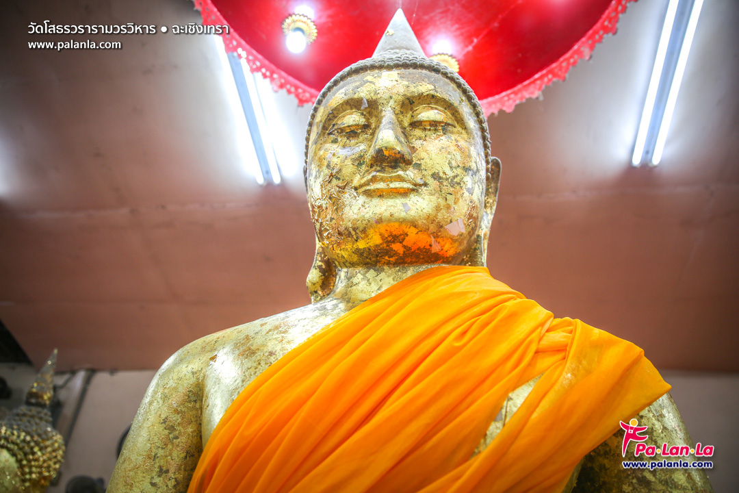 องค์พระพุทธรูปนี้มักเรียกกันว่าหลวงพ่อโสธร ซึ่งเป็นที่เคารพศรัทธาของชาวบ้านเป็นอย่างมาก โดยจะมีผู้เดินทางมากราบสักการะอย่างหนาแน่นเป็นประจำทุกวัน องค์หลวงพ่อโสธรเป็นพระพุทธรูปปางสมาธิ หน้าตักกว้าง 165 เซนติเมตร สูง 198 เซนติเมตร สลักขึ้นโดยช่างฝีมือล้านช้าง ซึ่งสันนิษฐานว่าถูกนำมาประดิษฐานที่วัดแห่งนี้ในสมัยกรุงธนบุรีตอนต้น ราวปีพ.ศ. 2313 ต่อมาในพ.ศ. 2501 ในหลวงรัชกาลที่ 9 ได้โปรดเกล้าฯ ให้ยกวัดแห่งนี้เป็นพระอารามหลวงชั้นตรี ชนิดวรวิหาร โดยมีนามเต็มว่า วัดโสธรวรารามวรวิหาร นับแต่นั้นมา