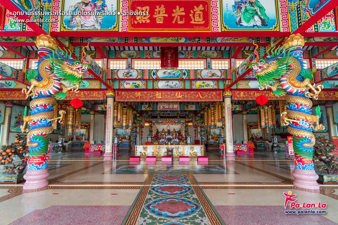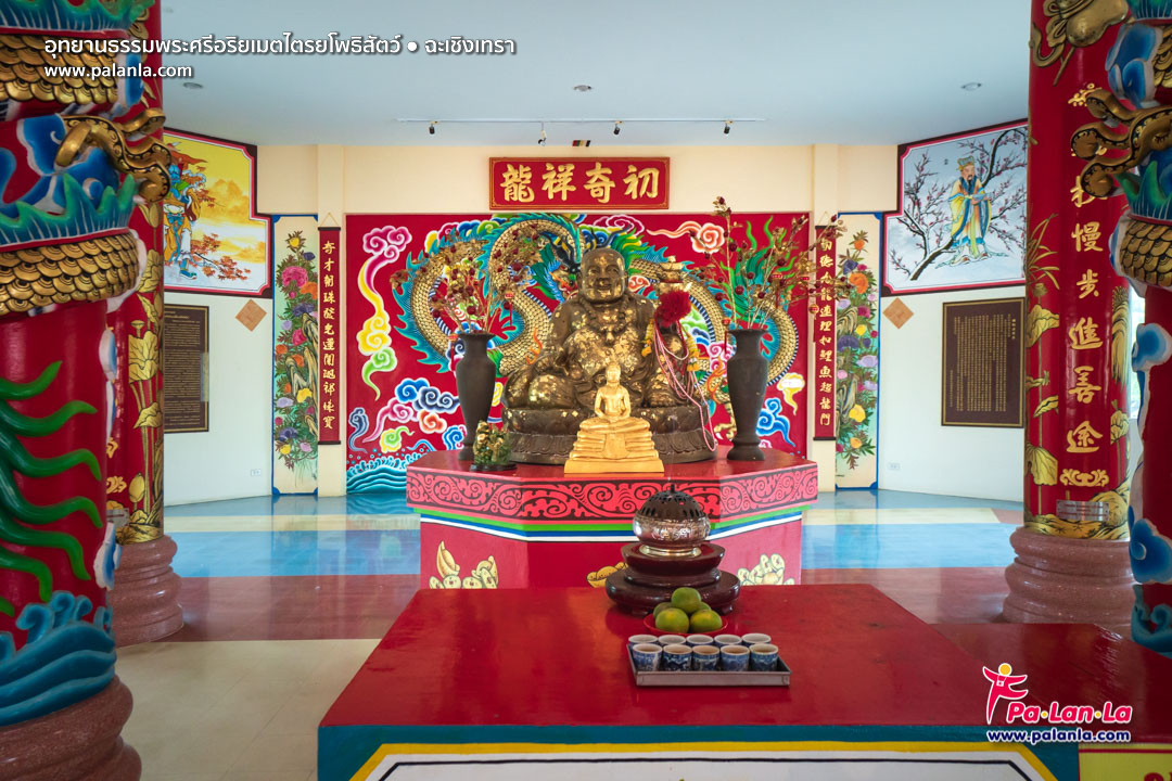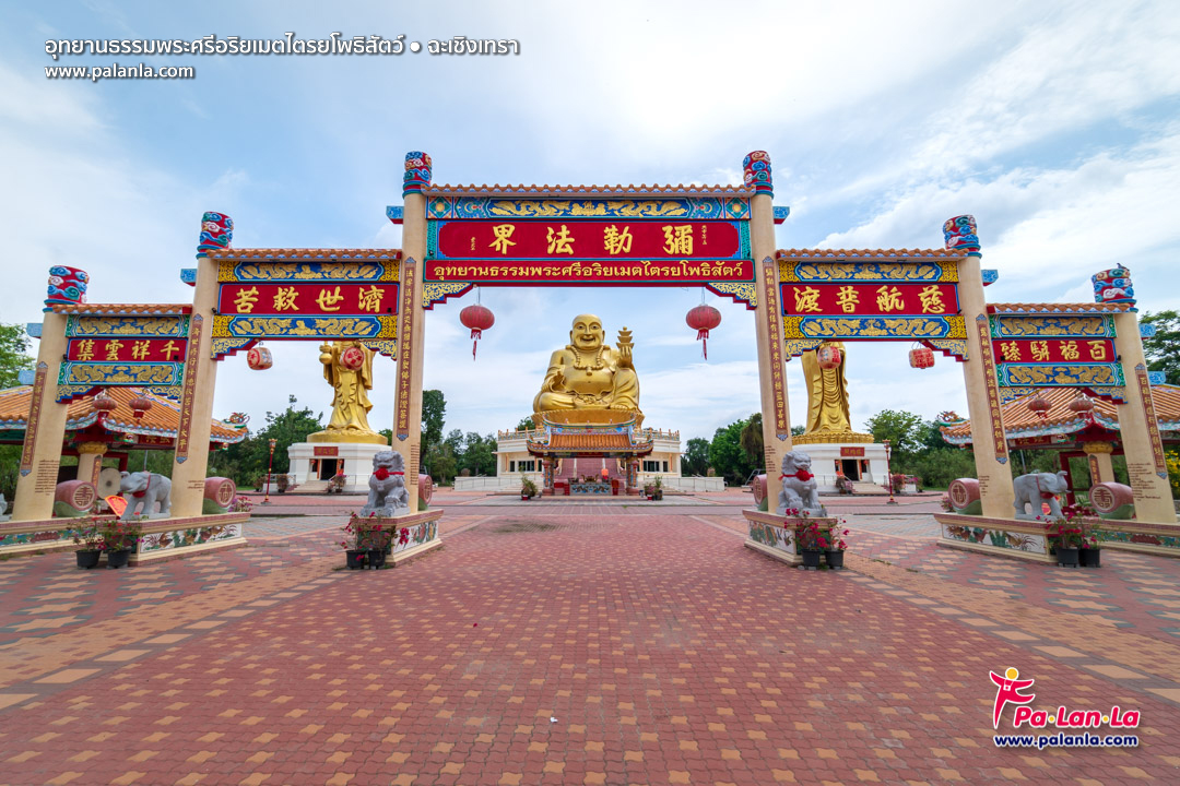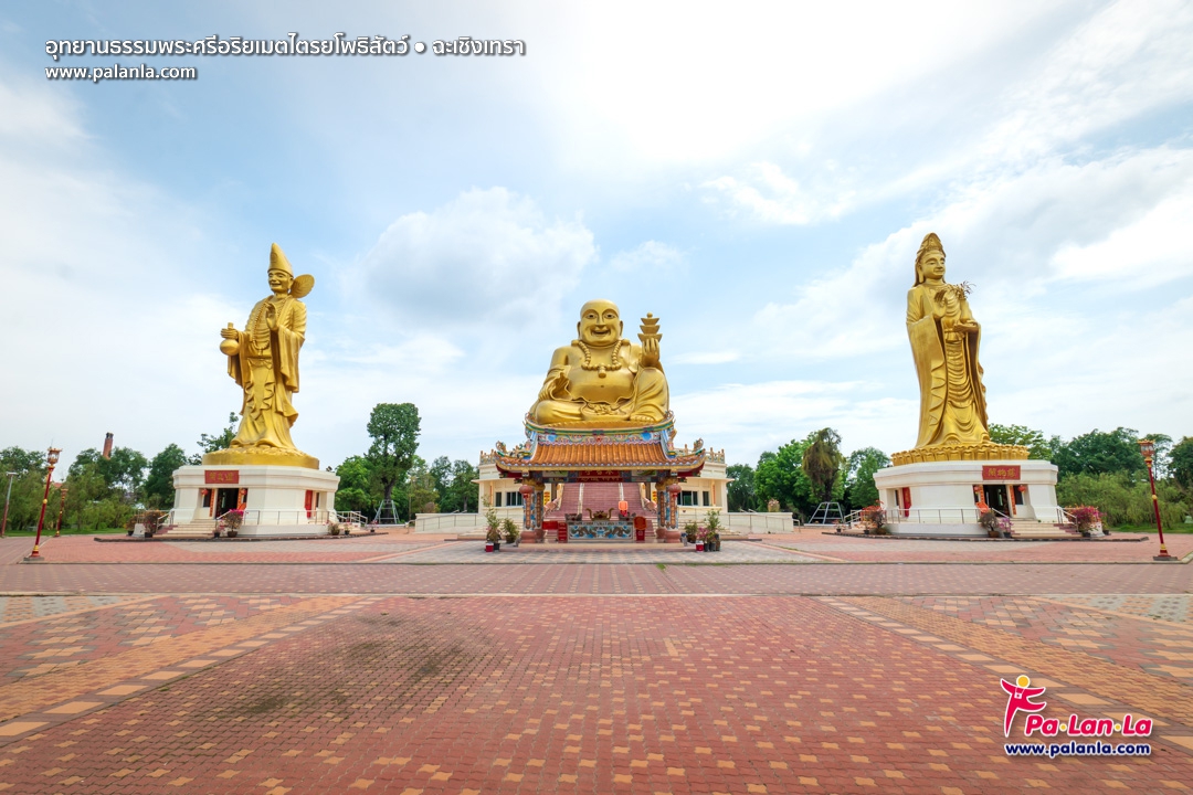 อุทยานธรรมพระศรีอริยเมตไตรยโพธิสัตว์ (Dhamma Park of Phra Sri Ariya Mettraiya Bodhisattva) เป็นอุทยานธรรมที่มีเทวรูปสีทององค์ใหญ่ของพระศรีอริเมตไตรยโพธิสัตว์ พระโพธิสัตว์กวนอิม และพระอรหันต์จี้กง ตั้งตระหง่านอย่างยิ่งใหญ่อยู่ภายในอุทยานธรรม เปิดให้ผู้ที่มาเยือนได้เข้ามาสักการะและเที่ยวชมความงดงามของเทวรูปทั้งสามองค์ โดยใต้เทวรูปแต่ละองค์นั้นเป็นอาคารขนาดย่อมที่สามารถเข้าไปสักการะเทวรูปของทวยเทพที่ประดิษฐานอยู่ภายในได้อีกด้วย นอกจากนี้บริเวณอุทยานธรรมยังตกแต่งด้วยสถาปัตยกรรมจีนและศิลปะจีนที่มีความสวยงามเป็นอย่างมาก