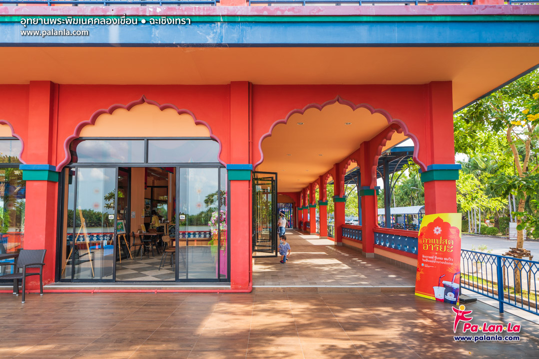 บริเวณอาคารร้านค้า ร้านอาหาร และร้านจำหน่ายของที่ระลึกภายในอุทยานพระพิฆเนศคลองเขื่อน