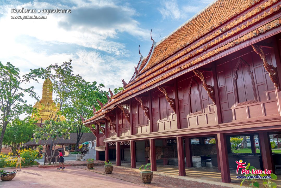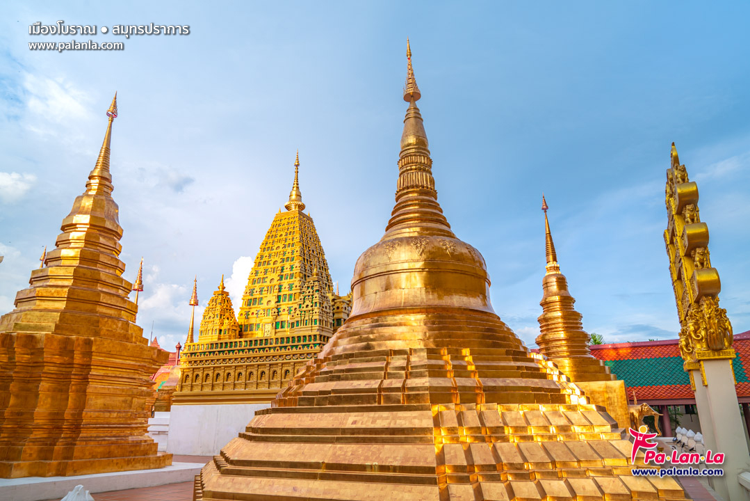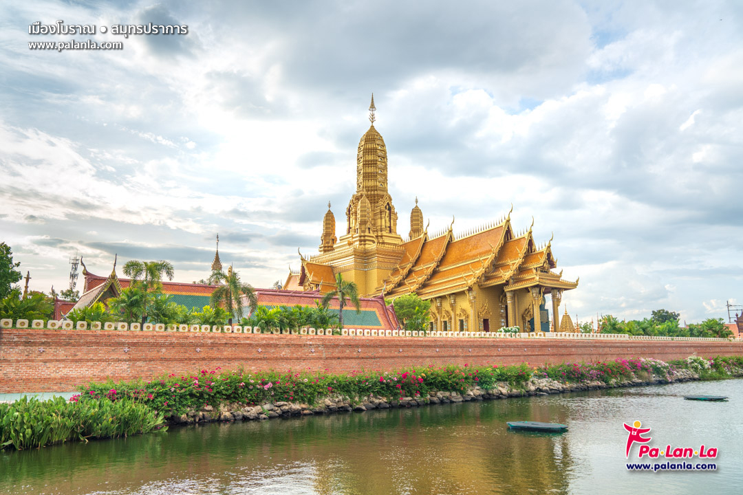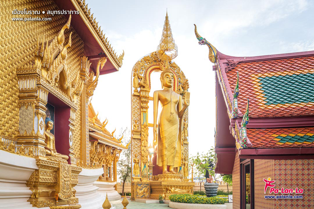 เมืองโบราณ (Ancient City) เป็นพิพิธภัณฑ์กลางแจ้งที่จำลองสถานที่สำคัญทั่วไทยมาไว้บนพื้นที่กว่า 800 ไร่ ด้วยโครงสร้างของที่ดินที่เป็นรูปขวานคล้ายกับแผนที่ประเทศไทย จึงแบ่งออกเป็น 4 ภาค คือ ภาคเหนือ ภาคอีสาน ภาคกลาง และภาคใต้ แต่ละภาคก็จะมีสถานที่จำลอง เช่น พระที่นั่งดุสิตมหาปราสาทในกรุงเทพฯ พระปรางค์สามยอดในจังหวัดลพบุรี ปราสาทหินพนมรุ้งในจังหวัดบุรีรัมย์ เจดีย์เจ็ดยอดในจังหวัดเชียงใหม่ และพระบรมธาตุไชยาในจังหวัดสุราษฎร์ธานี เป็นต้น ภายในมีจุดบริการรถและเรือรับส่งไปยังจุดต่างๆ ของเมืองโบราณ นอกจากนี้ยังมีบริการให้เช่าชุดไทยไว้ใส่ถ่ายภาพสวยๆ กันด้วย
