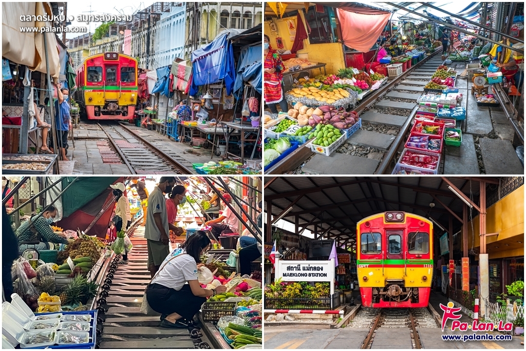 เมื่อเอ่ยถึงสถานที่ท่องเที่ยวในจังหวัดสมุทรสงคราม สถานที่อันดับต้นๆ ที่จะไม่เอ่ยถึงเลยไม่ได้ก็คือ ตลาดร่มหุบ (Maeklong Railway Market) ตลาดที่ตั้งอยู่ระยะประชิดล้อรถไฟ ที่เต็มไปด้วยสีสัน ชีวิตชีวา และความหวาดเสียว ซึ่งดึงดูดให้นักท่องเที่ยวจากทั่วทุกมุมโลกอยากเดินทางมาสัมผัสและบันทึกภาพเก็บไว้ ชาวบ้านมักเรียกตลาดแห่งนี้ว่า “ตลาดเสี่ยงตาย” เป็นตลาดที่มีมาตั้งแต่ราวปี พ.ศ. 2527 ตั้งอยู่ติดกับสถานีรถไฟแม่กลองและเป็นส่วนหนึ่งของตลาดเทศบาลจังหวัดสมุทรสงคราม เอกลักษณ์อันโดดเด่นของตลาดแห่งนี้คือพ่อค้าแม่ค้าจะตั้งแผงค้าที่สองข้างทางรถไฟความยาวกว่า 500 เมตร ส่วนลูกค้าก็ใช้ทางรถไฟเป็นถนนสำหรับซื้อของ เมื่อได้ยินเสียงระฆังหรือธงที่โบกสะบัดจากนายสถานีพ่อค้าแม่ค้าก็จะรีบหุบร่มและเก็บแผงขายของทันที จากนั้นเมื่อรถไฟผ่านไปจึงค่อยกลับมาตั้งแผงใหม่อีกครั้ง ในแต่ละวันนั้นรถไฟที่จะแล่นผ่านตลาดร่มหุบมีจำนวน 8 เที่ยวด้วยกัน โดยจะเข้าสถานีแม่กลองเวลา 08.30, 11.10, 14.30, 17.40 น. และออกจากสถานีแม่กลองเวลา 06.20, 09.00, 11.30, 15.30 น.