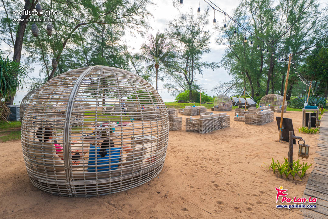 โซนที่นั่งของร้านอาหารที่หาดไม้ขาว