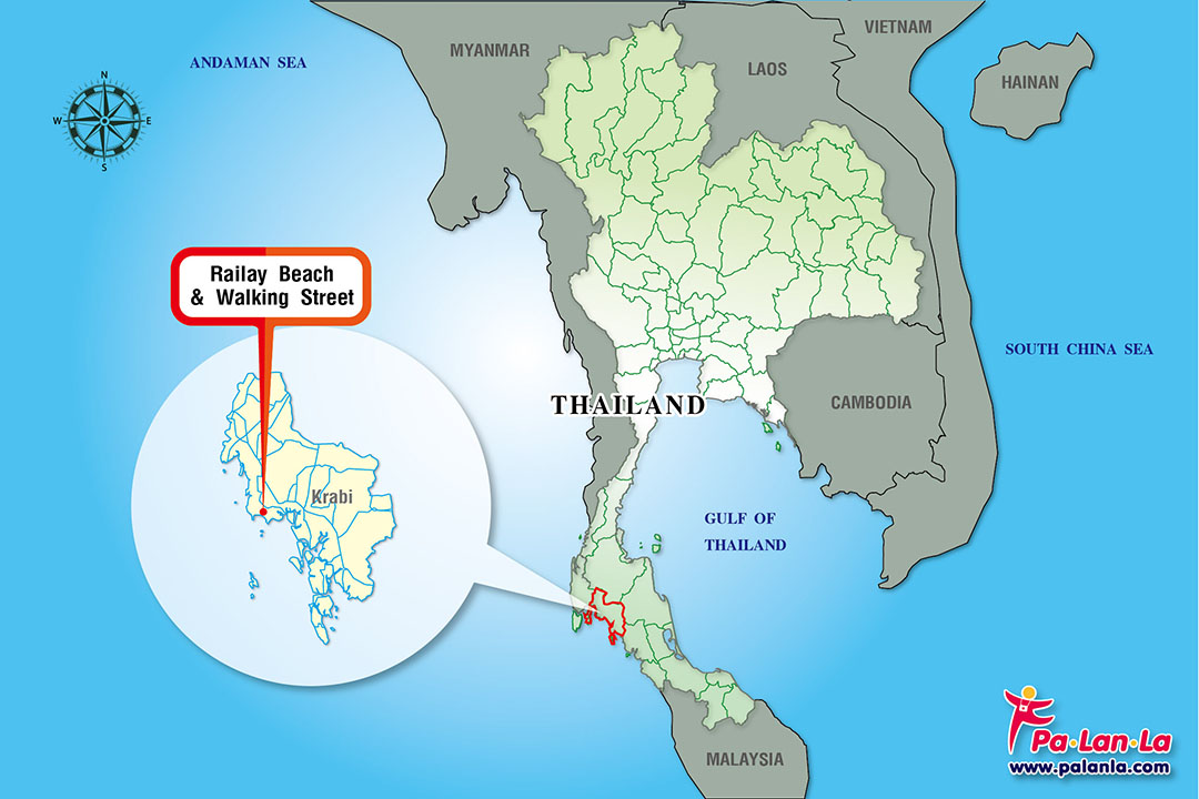 แผนที่ตั้ง หาดไร่เลย์ และ ไร่เลย์วอล์คกิ้งสตรีท (Railay Beach & Walking Street) จังหวัดกระบี่ ประเทศไทย
