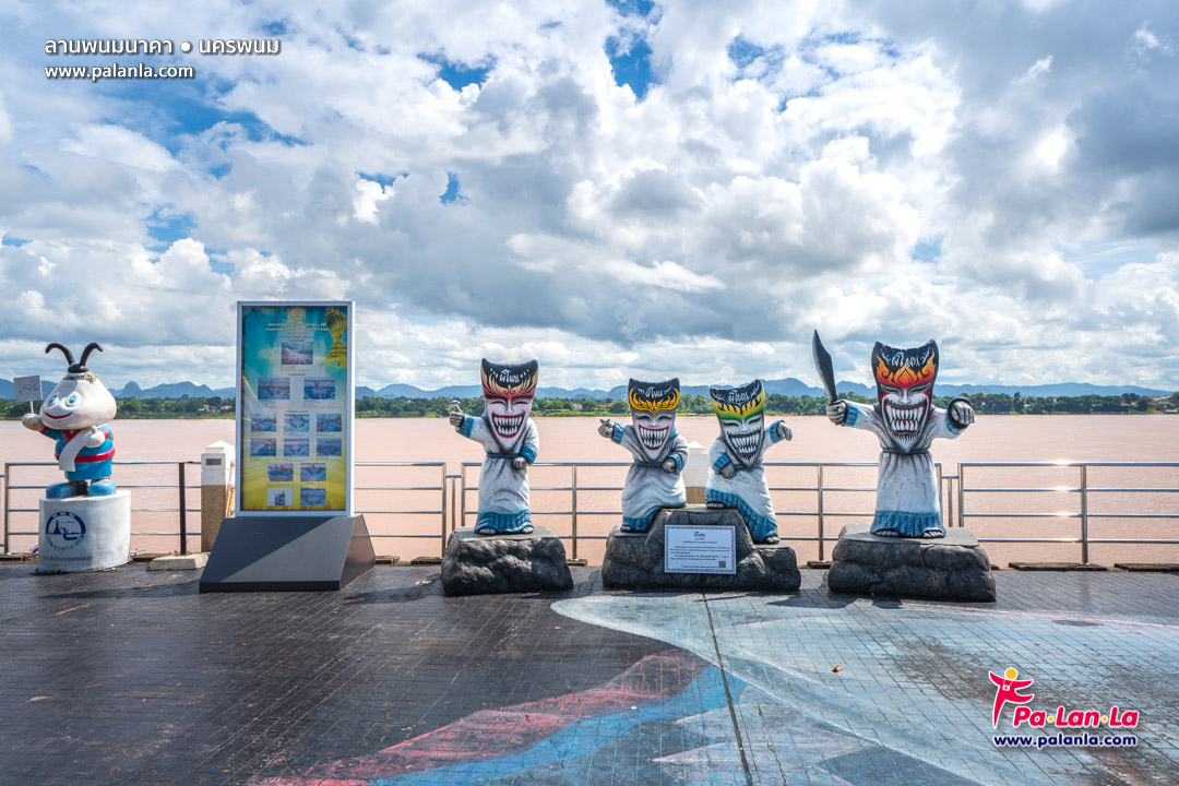 รูปปั้นผีโผนริมทางเดินเลียบแม่น้ำโขง