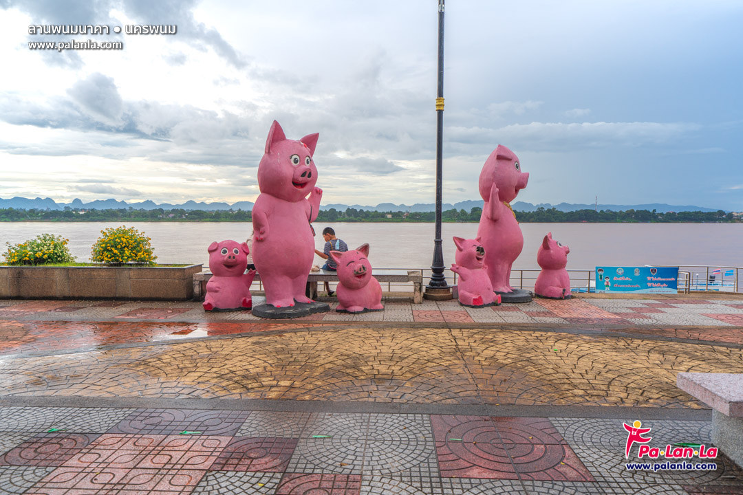 รูปปั้นหมูริมแม่น้ำโขง