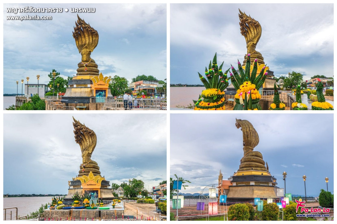 พญาศรีสัตตนาคราชเป็นรูปปั้นพญานาคเจ็ดเศียรสีทององค์ใหญ่ มีความสูงรวมฐานประมาณ 16.29 เมตร ประดิษฐานอยู่ริมฝั่งแม่น้ำโขง โดยหันหน้าไปทางทิศเหนือ หางชี้ไปทางแม่น้ำโขง รูปปั้นแห่งนี้ถือเป็นสิ่งที่แสดงถึงความศรัทธาของประชาชนชาวไทย-ลาวที่มีต่อองค์พญานาค โดยตามตำนานเชื่อกันว่าองค์พญานาคเป็นเทพผู้ดูแลลำน้ำโขง และเป็นผู้รักษาพระพุทธศาสนา รวมถึงคอยปกป้องคุ้มครองประชาชนทั้งสองฟากฝั่ง ที่นี่จึงเป็นแลนด์มาร์กอีกแห่งหนึ่งของจังหวัดนครพนมที่ควรมาเที่ยวชม