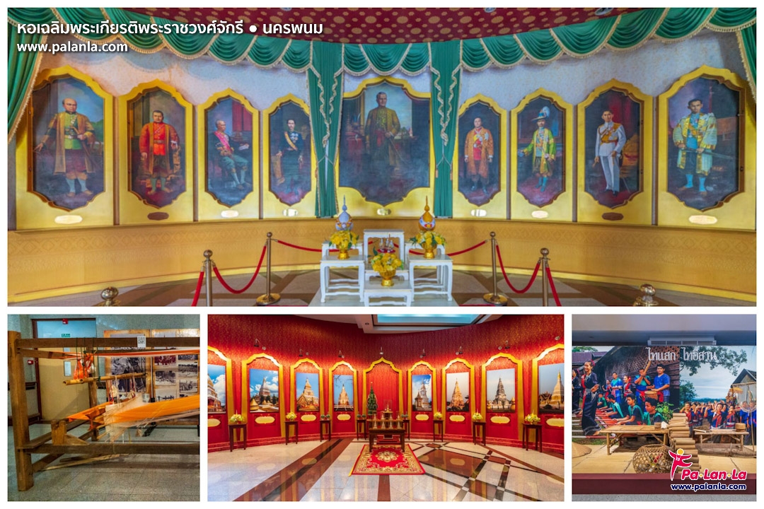 หอเฉลิมพระเกียรติพระราชวงศ์จักรีเป็นอาคารนิทรรศการจัดแสดงประวัติความเป็นมาของพระมหากษัตริย์แห่งพระราชวงศ์จักรี โดยมีการจัดแสดงพระบรมฉายาสาทิสลักษณ์ พระบรมฉายาลักษณ์ ภาพถ่าย พระราชประวัติ และข้อมูลที่น่าสนใจของพระราชกรณียกิจต่างๆ รวมถึงมีการจัดแสดงนิทรรศการพระธาตุ และความเป็นอยู่ของคนในท้องถิ่น