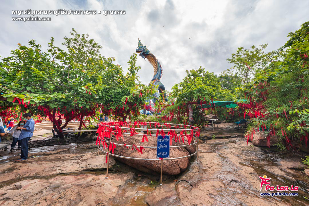 บริเวณด้านหน้ารูปปั้นเป็นพื้นที่สักการะพญาศรีมุกดามหามุนีนีลปาลนาคราช
