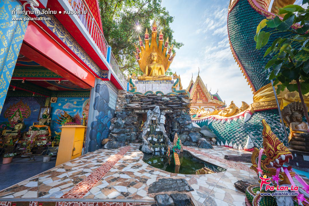 วัดไทยตั้งอยู่ที่ตำบลจุมพล อำเภอโพนพิสัย ในจังหวัดหนองคาย วัดแห่งนี้เป็นวัดเก่าแก่อีกแห่งหนึ่งของจังหวัด มีเนื้อที่ประมาณ 5 ไร่ 1 งาน 28 ตารางวา สิ่งปลูกสร้างที่เป็นไฮไลท์ของวัดไทยคือถ้ำพญานาค ซึ่งสร้างขึ้นในปีพ.ศ. 2550 ซึ่งเป็นปีที่อำเภอโพนพิสัยครบรอบการก่อตั้งเมืองครบ 100 ปี โดยมีที่มาที่ไปจากการที่ท่านเจ้าอาวาสวัดไทยได้นิมิตว่า มีหญิงชายร่างกายสีดำมานิมนต์ให้สร้างสัญลักษณ์ประจำเมืองบาดาล หรือเมืองพญานาคไว้ที่เมืองมนุษย์บริเวณวัดไทย ท่านเจ้าอาวาสจึงริเริ่มการสร้างถ้ำบาดาลนี้เอาไว้ที่วัด โดยบริเวณด้านหน้าเป็นที่ประดิษฐานของหลวงพ่อใหญ่ซึ่งเป็นพระพุทธรูปปางนาคปรกองค์ใหญ่ และมีราชาแห่งพญานาคสีเขียวความสูง 19 เมตร เฝ้าที่หน้าทางเข้าถ้ำ ในส่วนบริเวณทางเข้าถ้ำจะเชื่อมเข้าไปยังด้านในท้องพญานาค และทางออกจะอยู่บริเวณหาง ภายในถ้ำแบ่งออกเป็น 7 ห้อง แต่ละห้องแสดงถึงเรื่องราวของเมืองบาดาล เช่น ห้องสมบัติพญานาค ซึ่งจำลองสถานที่เก็บสมบัติของพญานาคที่เต็มไปด้วยแก้วแหวนเงินทอง บริเวณทางเดินประดับด้วยจิตรกรรมฝาผนังที่ถ่ายทอดเรื่องราวตำนานของพญานาคและโลกบาดาลไว้อย่างดงาม นอกจากนี้ บริเวณริมฝั่งโขงด้านหน้าวัดไทย ยังเป็นที่ตั้งของรูปปั้นพญาพิสัยสัตนาคราช ซึ่งเป็นรูปปั้นพญานาค 7 เศียรสีทององค์ใหญ่ และบริเวณนี้ยังเป็นจุดชมบั้งไฟพญานาคที่ได้รับความนิยมที่สุดของจังหวัดหนองคายอีกด้วยโดยจะเกิดขึ้นในคืนวันออกพรรษา 15 ค่ำเดือน 11 ของทุกปี