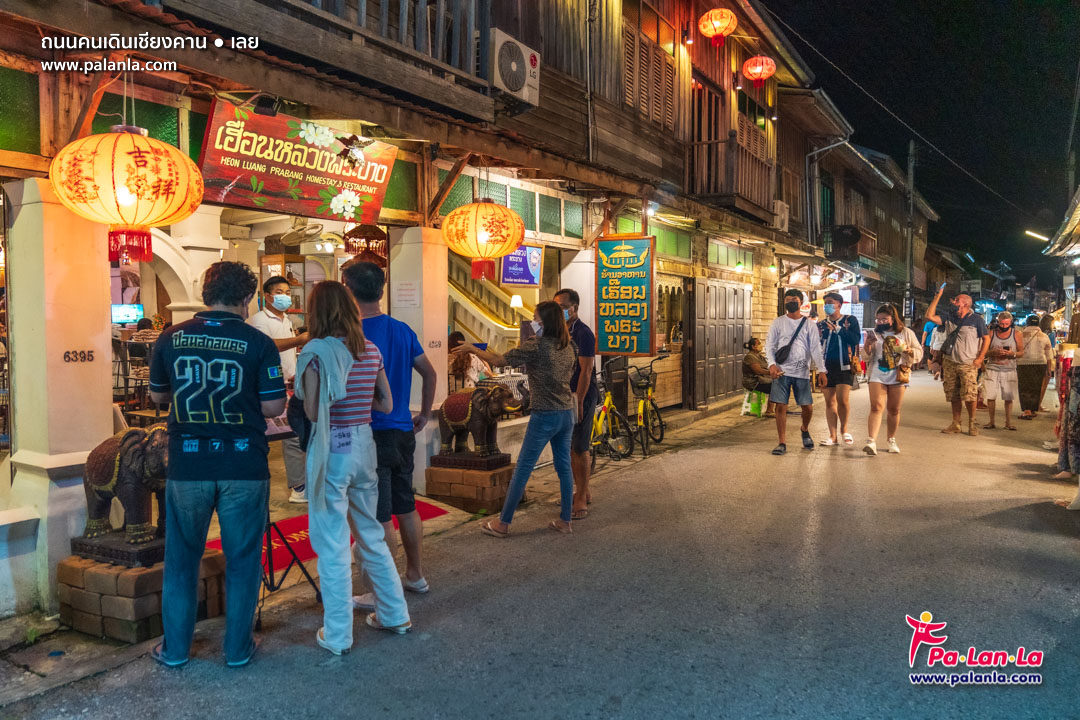 บรรยากาศถนนคนเดินเชียงคานที่มีนักท่องเที่ยวมาเดินเล่นกันอย่างคึกคัก