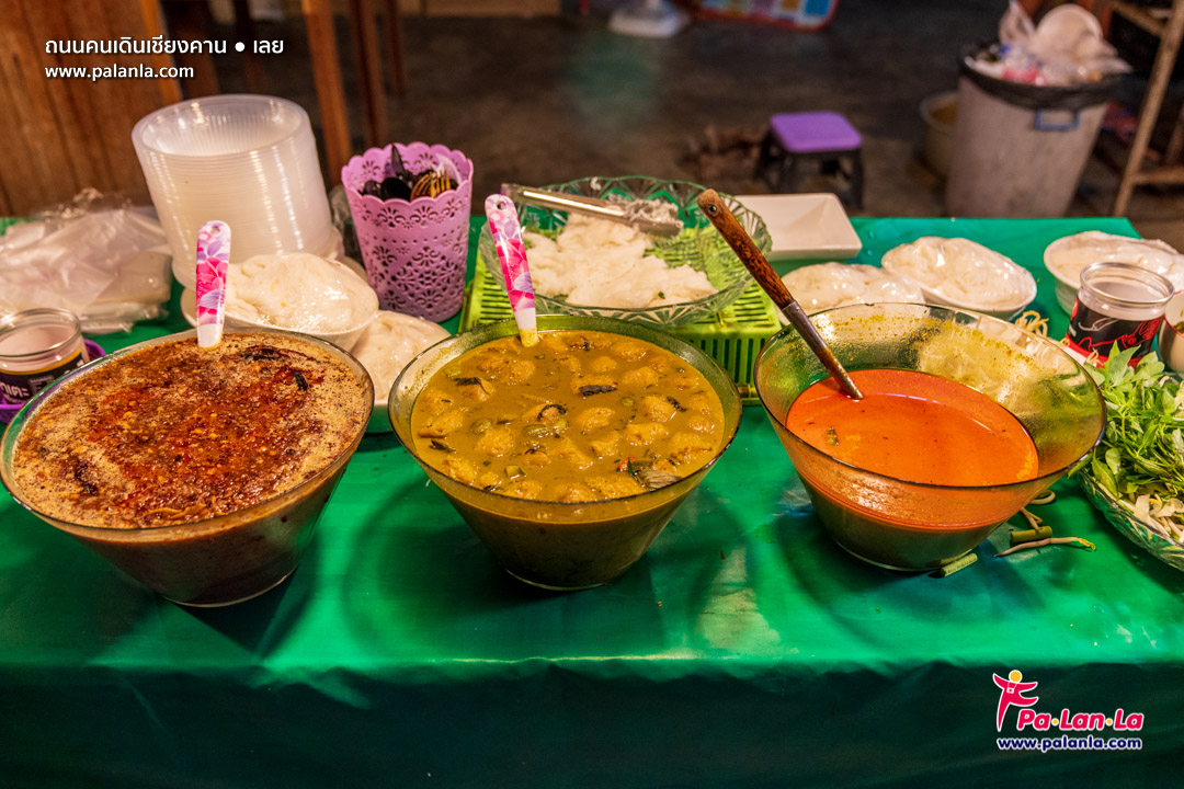 ร้านขายขนมจีนที่มีน้ำแกงให้เลือกหลายแบบ