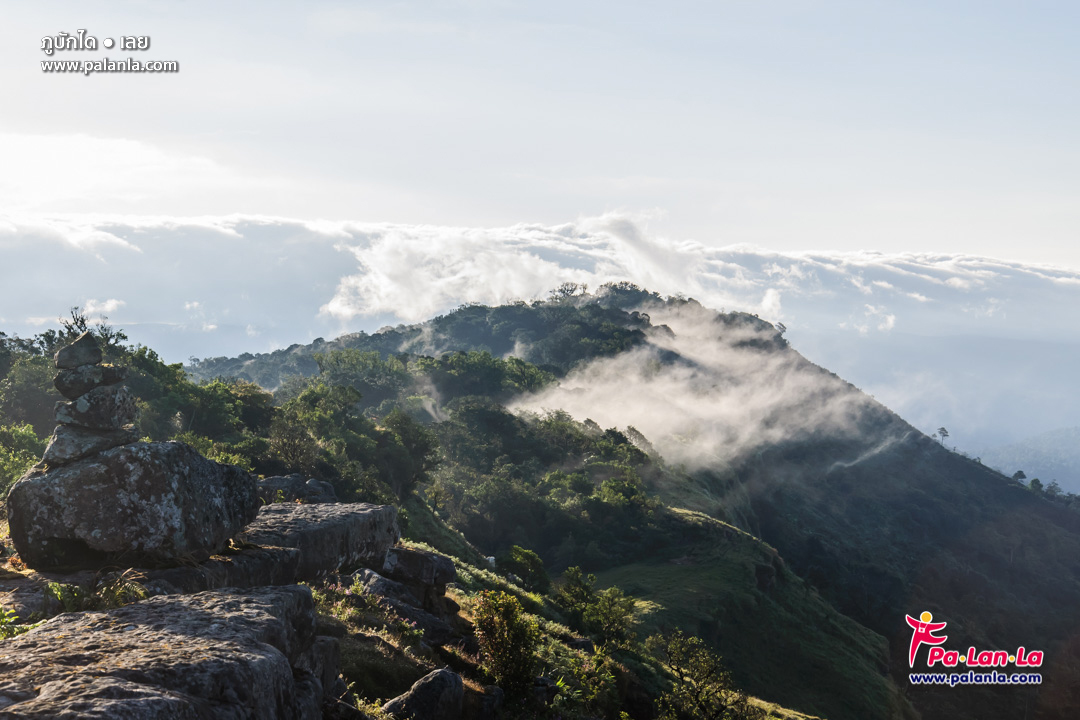 บรรยากาศขุนเขาและสายหมอกบริเวณด้านบนภูบักได