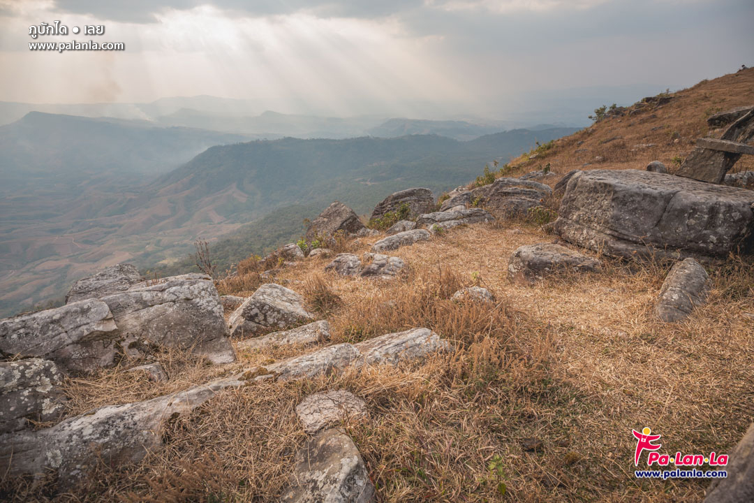 บริเวณด้านบนภูปกคลุมด้วยหญ้าและก้อนหิน