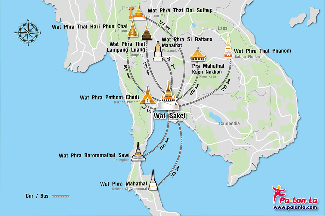 แผนที่แสดงตำแหน่งของ 10 พระธาตุ