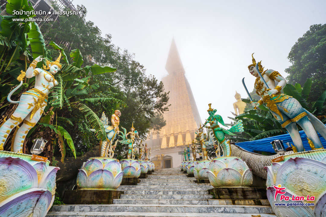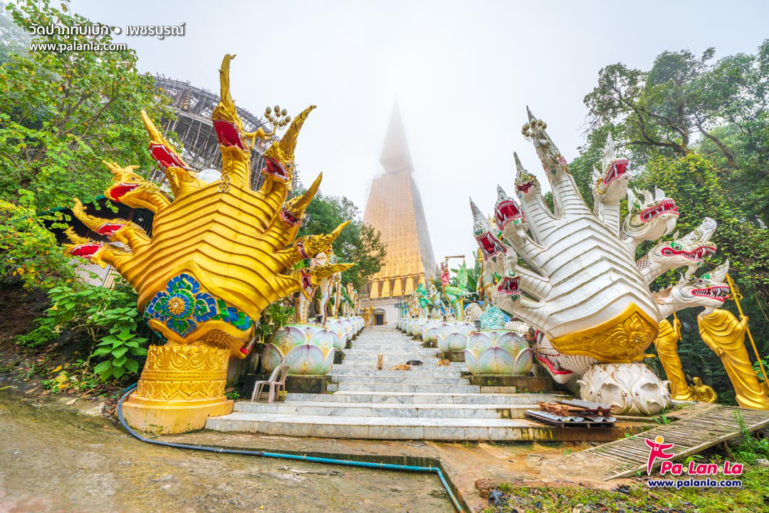วัดป่าภูทับเบิก (Wat Pa Phu Thap Buek) ถือเป็นวัดที่อยู่บนพื้นที่ที่สูงที่สุดในประเทศไทยและมีบรรยากาศที่โอบล้อมด้วยป่าไม้ท่ามกลางทิวทัศน์ขุนเขาและสายหมอก ภายในวัดโดดเด่นด้วยพระมหาธาตุเจดีย์โพธิปักขิยธรรมที่ตั้งตระหง่านอย่างงดงาม ด้านในเป็นที่ประดิษฐานองค์พระพุทธรูปศักดิ์สิทธิ์และพระบรมสารีริกธาตุให้พุทธศาสนิกชนได้กราบสักการะเพื่อความเป็นสิริมงคล นอกจากนี้ นักท่องเที่ยวยังสามารถเที่ยวชมบริเวณโดยรอบของวัดที่ประดับด้วยพระพุทธรูปและรูปปั้นที่ถ่ายทอดเรื่องราวทางพุทธศาสนา และชมวิวหุบเขาจากมุมสูงได้อีกด้วย