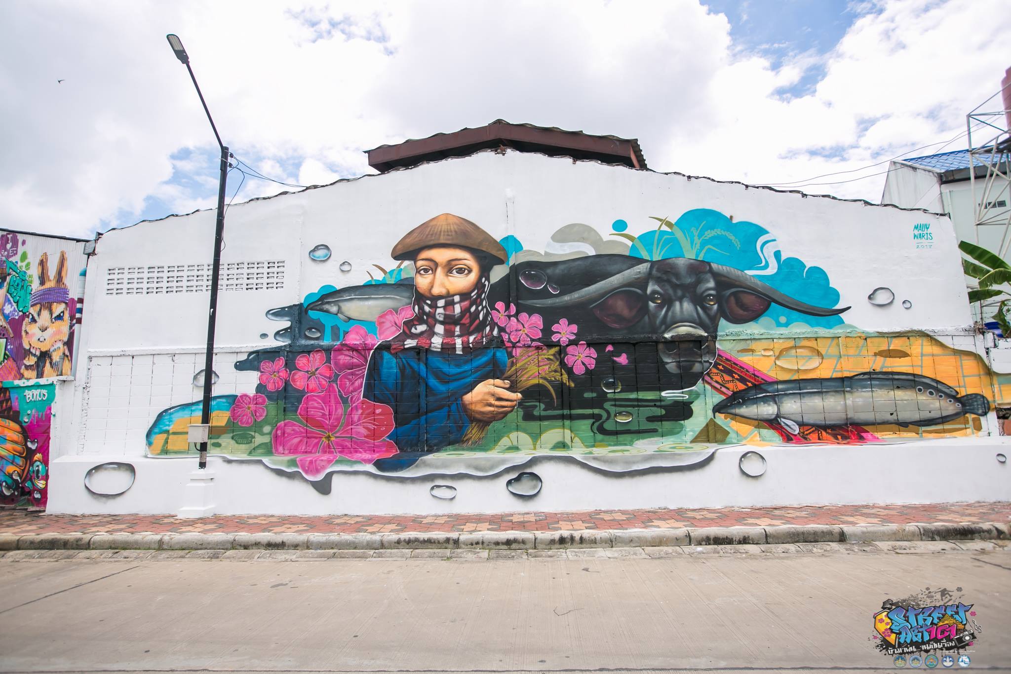 ภาพสวยๆ บนผนังอาคารที่สตรีทอาร์ต ร้อยเอ็ด (ขอบคุณภาพประกอบจาก https://www.facebook.com/StreetArtRoiEt)