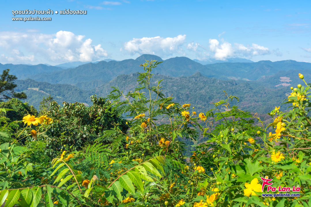 ทัศนียภาพทิวเขาทอดยาวสลับซับซ้อนจากบริเวณจุดชมวิวปางมะผ้า