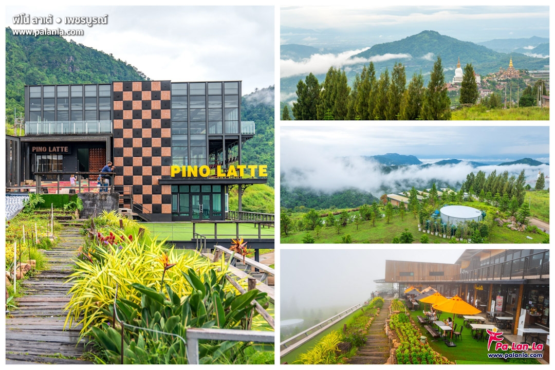 พีโน่ ลาเต้เป็นที่พักและร้านกาแฟชื่อดังบนเขาค้อที่อยู่ไม่ไกลจากวัดพระธาตุผาซ่อนแก้ว ตัวร้านตกแต่งสไตล์โมเดิร์นอินดัสเตรียล และมีโซนด้านนอกไว้ให้นักท่องเที่ยวได้นั่งชมวิวชมทะเลหมอกในยามเช้าและสัมผัสกับอากาศอันบริสุทธิ์ รวมถึงชมทิวทัศน์ทางธรรมชาติอันสวยงาม นอกจากนี้ จุดชมวิวบริเวณนี้ยังสามารถมองเห็นวิวด้านหลังของวัดพระธาตุผาซ่อนแก้วได้อีกด้วย