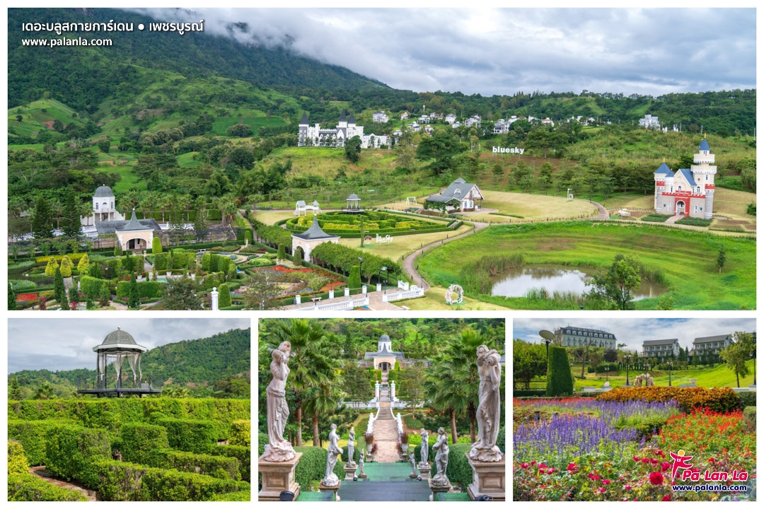 เดอะบลูสกายการ์เดนเป็นสวนสไตล์อังกฤษที่โอบล้อมด้วยขุนเขา สวนแห่งนี้ตั้งอยู่ในพื้นที่ของเดอะบลูสกายรีสอร์ทเขาค้อซึ่งเป็นรีสอร์ทชื่อดังอีกแห่งหนึ่งของเขาค้อ ภายในสวนมีบริเวณกว้างขวาง ตกแต่งอย่างสวยงามด้วยสนามหญ้า สวนดอกไม้ ปราสาท แปลงดอกไม้ เขาวงกต น้ำพุ ชิงช้า และจุดชมวิวสวยๆ ที่มองไปทางไหนก็เพลินตาเพลินใจไปกับทิวทัศน์อันเขียวขจีและสายหมอก
