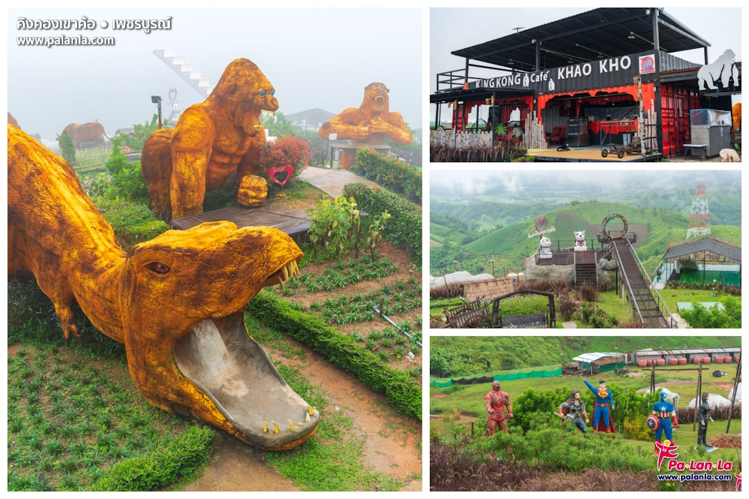 คิงคองเขาค้อเป็นจุดชมวิวทะเลหมอกและทุ่งกังหันท่ามกลางสวนสวยที่ตกแต่งด้วยหุ่นฟางคิงคองขนาดยักษ์และผองเพื่อนอย่างไดโนเสาร์ และแมมมอธ รวมทั้งหุ่นจำลองเหล่าซูเปอร์ฮีโร่ต่างๆ ที่ช่วยสร้างบรรยากาศสนุกสนานในการถ่ายภาพและชมทิวทัศน์อันเขียวขจีท่ามกลางสายหมอกของเขาค้อ