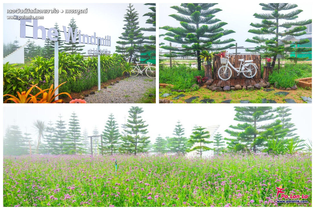 เดอะวินด์มิลล์แอทเขาค้อเป็นสวนดอกไม้ที่ได้รับความนิยมอีกแห่งหนึ่งของเขาค้อ เพราะสีสันของดอกไฟเออร์เวิร์คและดอกเวอร์บีน่าที่มีสีชมพูสลับม่วงที่บานสะพรั่งตัดกับสีเขียวของขุนเขาและต้นสนจนเกิดทัศนียภาพที่สวยงามถูกใจนักท่องเที่ยว โดยภายในบริเวณมีจุดถ่ายภาพและจุดชมวิวสวยๆ มากมายให้นักท่องเที่ยวได้เที่ยวชม