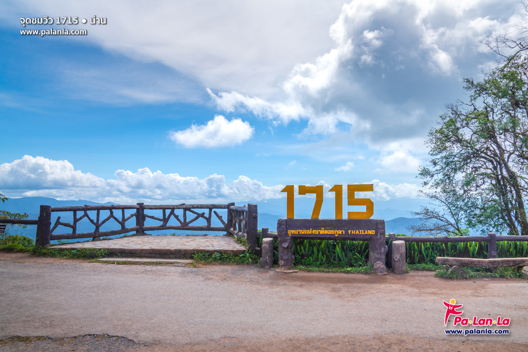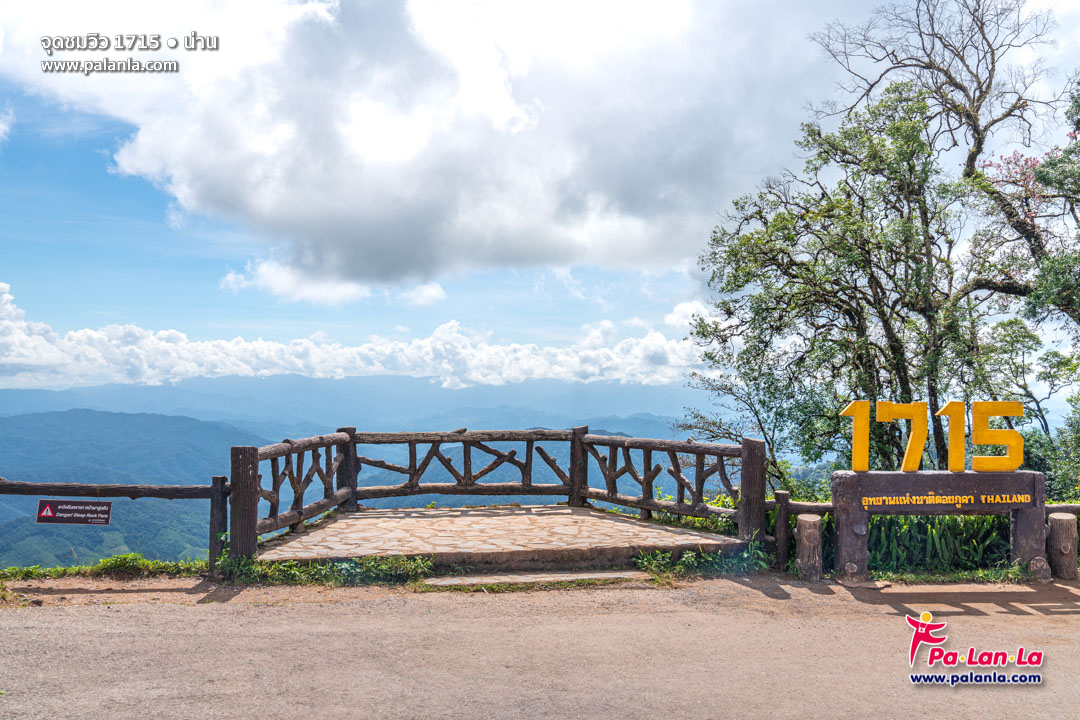 จุดชมวิว 1715 เป็นจุดชมวิวที่ตั้งอยู่บนถนนเส้นทางสายปัว-บ่อเกลือในตำบลภูคา อำเภอปัว โดยอยู่ห่างจากที่ทำการอุทยานแห่งชาติดอยภูคาเพียง 8 กิโลเมตรเท่านั้น และสำหรับตัวเลข 1715 นี้มาจากความสูง 1,715 เมตรจากระดับน้ำทะเลนั่นเอง