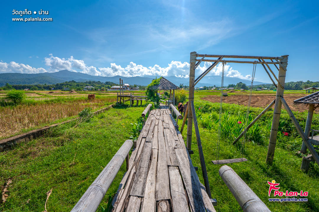 สะพานไม้ทอดยาวไปยังกลางทุ่งนาเป็นอีกหนึ่งจุดชมวิวที่ใกล้ชิดกับธรรมชาติ