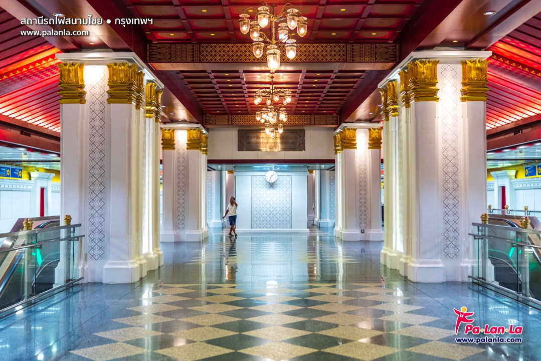 บรรยากาศโอ่โถงและตกแต่งงดงามภายในสถานีสนามไชยให้ความรู้สึกคล้ายท้องพระโรง